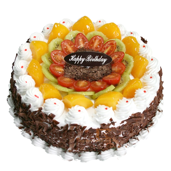 • 8寸鮮奶水果蛋糕,中心放各色時令水果,扇形巧克力插片